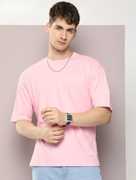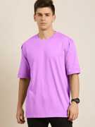 Men Solid Round Neck Cotton Blend Purple T-Shirt