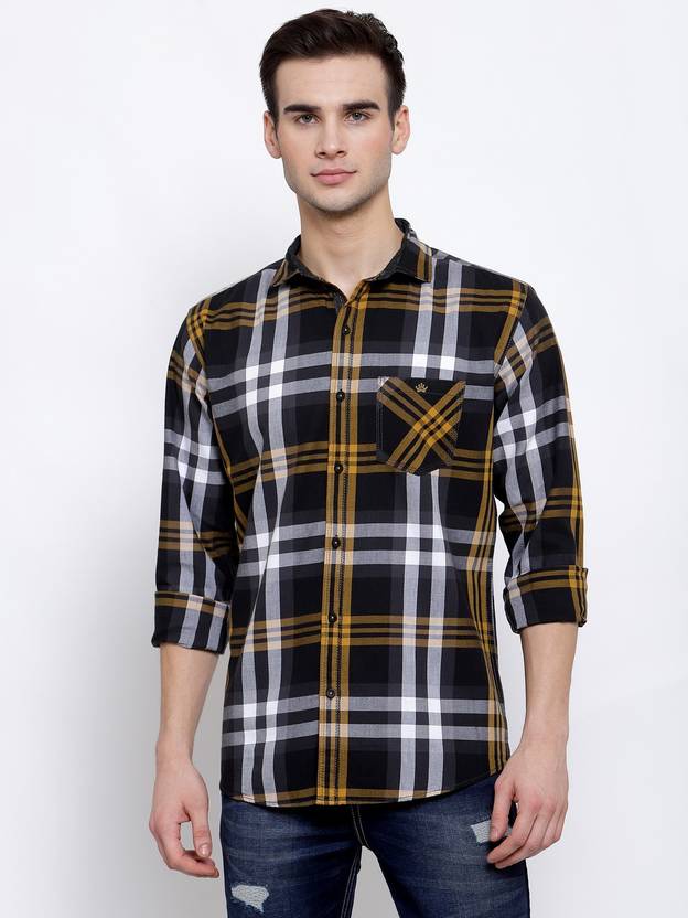 Men Slim Fit Checkered Cut Away Collar Casual Shirt