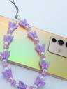 The image shows a hand holding an elegant handmade beaded phone charm keychain. Phone charms are decorative accessories designed to personalize mobile phones. They can prevent phones from being dropped and add a fashionable touch. Phone charms are connected to a mobile device via a phone connector or a silicone plug. To attach a phone charm, the loop is pulled through the hole on the phone case, and then the beads are pulled through the loop to form a knot. Phone charms have become a popular accessory, allowing users to express their unique style. They are made using beads, thread, scissors, and optional items like super glue and lobster clasp cords.