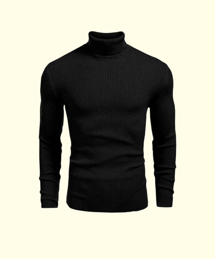 HouseOfCommon Striped Men High Neck Black T-Shirt