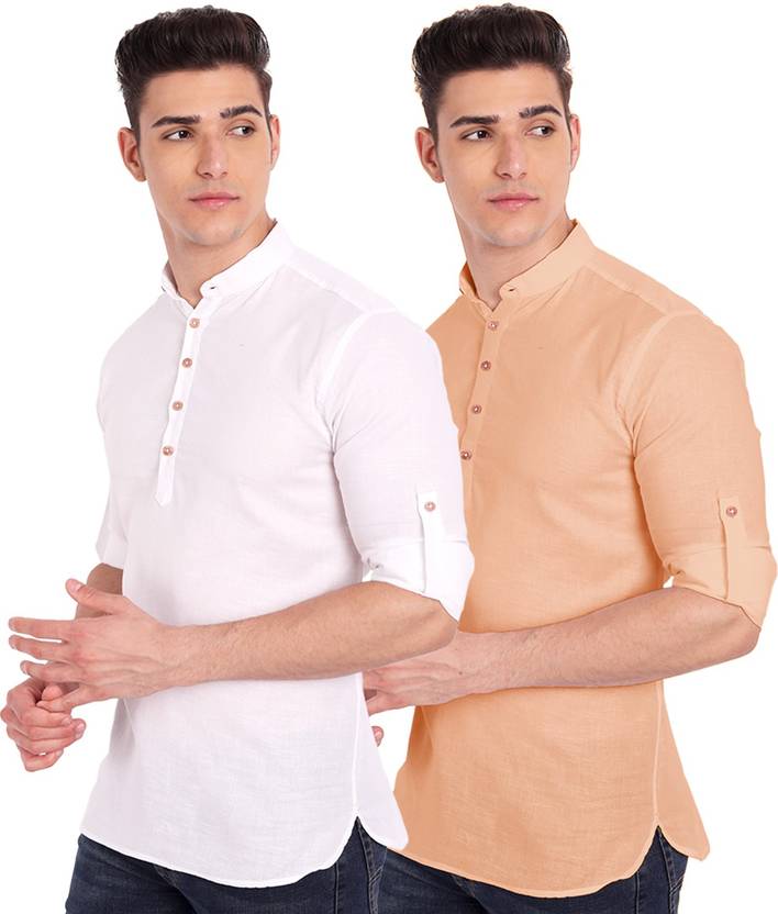 Pack of 2 Men Solid Pure Cotton Straight Kurta (Gold, White)