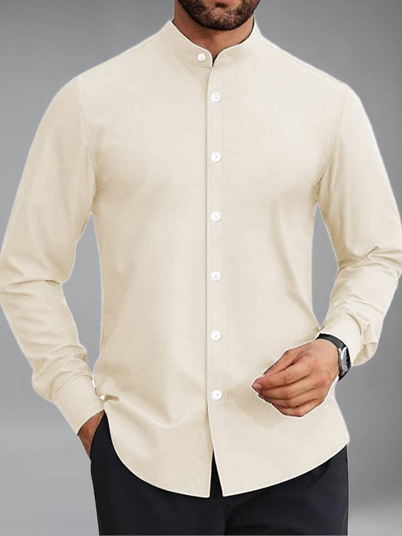 Yugnik Men Slim Fit Solid Mandarin Collar Casual Shirt