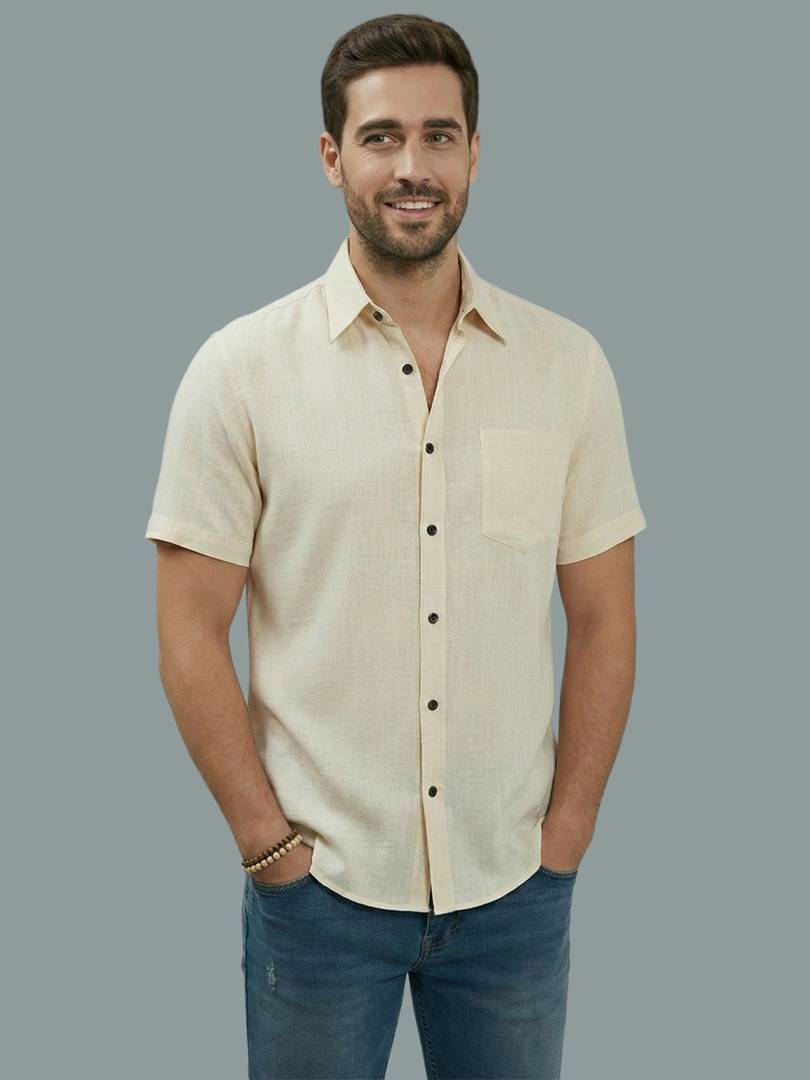 This Cotton Blend Shirt is perfect for men who value style and comfort. Its versatile design makes it ideal for any occasion—festivals, parties, or casual outings. Product Details 📋 👨🦰 Gender: Men 🎨 Pattern: Solid 🧵 Design Type: Solid 🔘 Closure: Button 👕 Sleeve: Half Sleeve ⬆️ Waist Rise: Mid-Rise 🪡 Hemline: Curved 🌿 Fabric: Cotton Blend 📏 Product Length: Short 📦 Material & Care 🧺 Fabric: Cotton Blend Wash: Suitable for hand wash and machine wash. How to Style 🎯 Pair it with dark-wash denim or linen trousers for a casual look. Dress it up with a pair of churidar or slim-fit pants for festive occasions. Add leather sandals or loafers and a wristwatch for a classy finish. Regular the sleeves for a relaxed vibe during daytime events. This shirt seamlessly blends traditional elegance with modern styling, making it a wardrobe essential for every man! 👌"