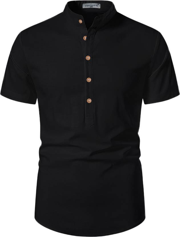 UNIFAV Men Slim Fit Solid Mandarin Collar Casual Shirt