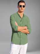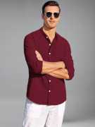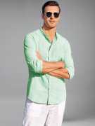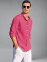 Men Slim Fit Solid Mandarin Collar Casual Shirt