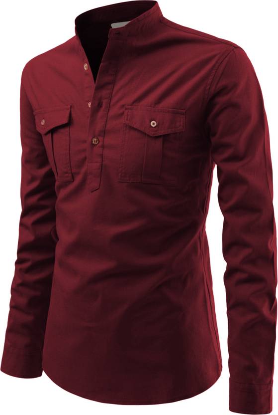 UNIFAV Men Solid Pathani Kurta (Maroon)