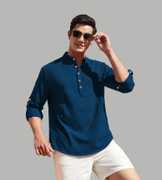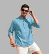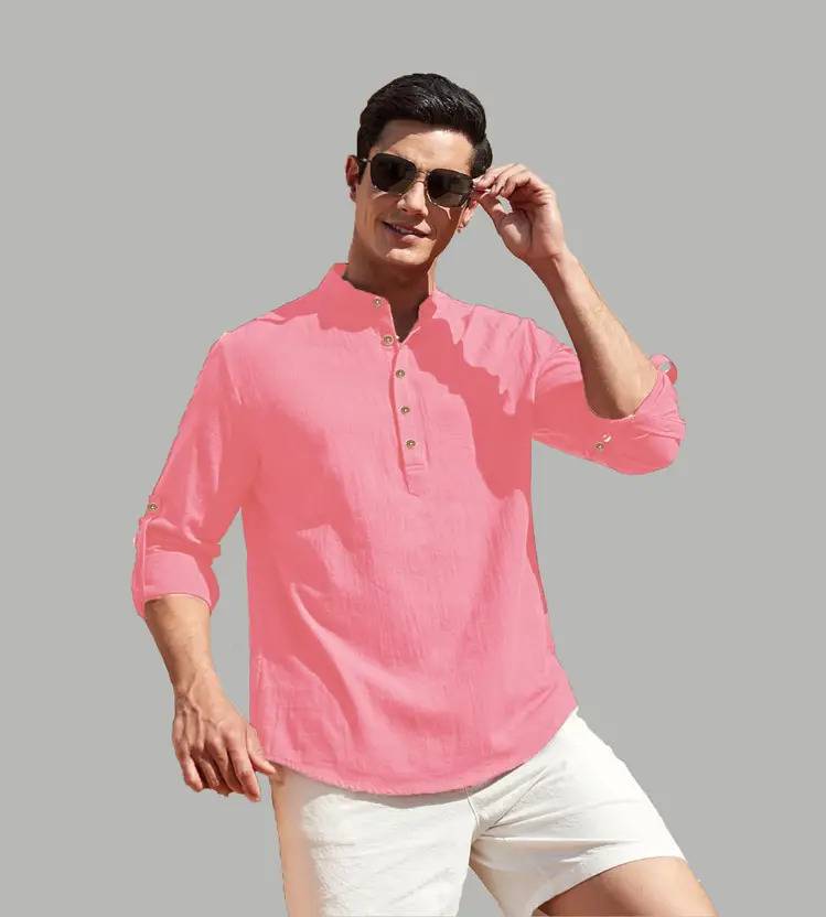 Men Solid Cotton Blend Straight Kurta (Pink)
