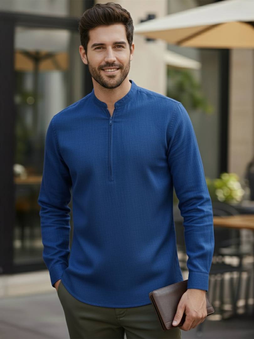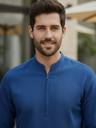 Men Solid Cotton Blend Straight Kurta (Blue)