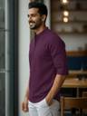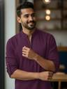 UNIFAV Men Solid Cotton Blend Straight Kurta (Purple)