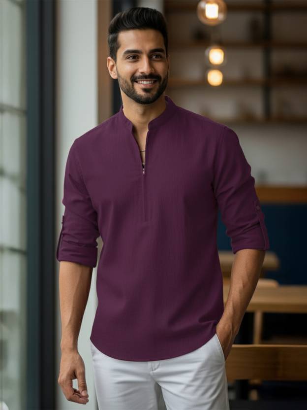 This Cotton Blend Short Kurta is perfect for men who value style and comfort. Its versatile design makes it ideal for any occasion—festivals, parties, or casual outings. Product Details 📋 👨‍🦰 Gender: Men 🎨 Pattern: Solid 🧵 Design Type: Plain 🔘 Closure: Zipper 👕 Sleeve: Full Sleeve ⬆️ Waist Rise: Mid-Rise 🪡 Hemline: Curved 🌿 Fabric: Cotton Blend 📏 Product Length: Short 📦 Material & Care 🧺 Fabric: Cotton Blend Wash: Suitable for hand wash and machine wash. How to Style 🎯 Pair it with dark-wash denim or linen trousers for a casual look. Dress it up with a pair of churidar or slim-fit pants for festive occasions. Add leather sandals or loafers and a wristwatch for a classy finish. Regular the sleeves for a relaxed vibe during daytime events. This shirt kurta seamlessly blends traditional elegance with modern styling, making it a wardrobe essential for every man! 👌