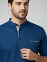 This Cotton Blend Short Kurta is perfect for men who value style and comfort. Its versatile design makes it ideal for any occasion—festivals, parties, or casual outings. Product Details 📋 👨‍🦰 Gender: Men 🎨 Pattern: Solid 🧵 Design Type: Plain 🔘 Closure: Button 👕 Sleeve: Half Sleeve ⬆️ Waist Rise: Mid-Rise 🪡 Hemline: Curved 🌿 Fabric: Cotton Blend 📏 Product Length: Short 📦 Material & Care 🧺 Fabric: Cotton Blend Wash: Suitable for hand wash and machine wash. How to Style 🎯 Pair it with dark-wash denim or linen trousers for a casual look. Dress it up with a pair of churidar or slim-fit pants for festive occasions. Add leather sandals or loafers and a wristwatch for a classy finish. Regular the sleeves for a relaxed vibe during daytime events. This shirt kurta seamlessly blends traditional elegance with modern styling, making it a wardrobe essential for every man! 👌