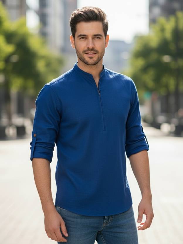 This Cotton Blend Short Kurta is perfect for men who value style and comfort. Its versatile design makes it ideal for any occasion—festivals, parties, or casual outings. Product Details 📋 👨‍🦰 Gender: Men 🎨 Pattern: Solid 🧵 Design Type: Plain 🔘 Closure: Zipper 👕 Sleeve: Full Sleeve ⬆️ Waist Rise: Mid-Rise 🪡 Hemline: Curved 🌿 Fabric: Cotton Blend 📏 Product Length: Short 📦 Material & Care 🧺 Fabric: Cotton Blend Wash: Suitable for hand wash and machine wash. How to Style 🎯 Pair it with dark-wash denim or linen trousers for a casual look. Dress it up with a pair of churidar or slim-fit pants for festive occasions. Add leather sandals or loafers and a wristwatch for a classy finish. Regular the sleeves for a relaxed vibe during daytime events. This shirt kurta seamlessly blends traditional elegance with modern styling, making it a wardrobe essential for every man! 👌