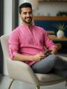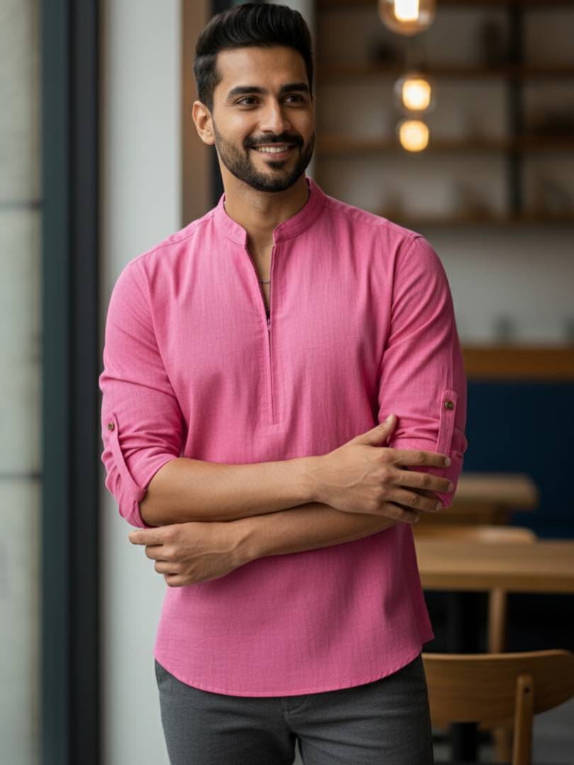 Men Solid Cotton Blend A-line Kurta (Pink)