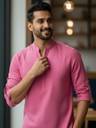 Vida Loca Men Solid A-line Kurta (Pink)
