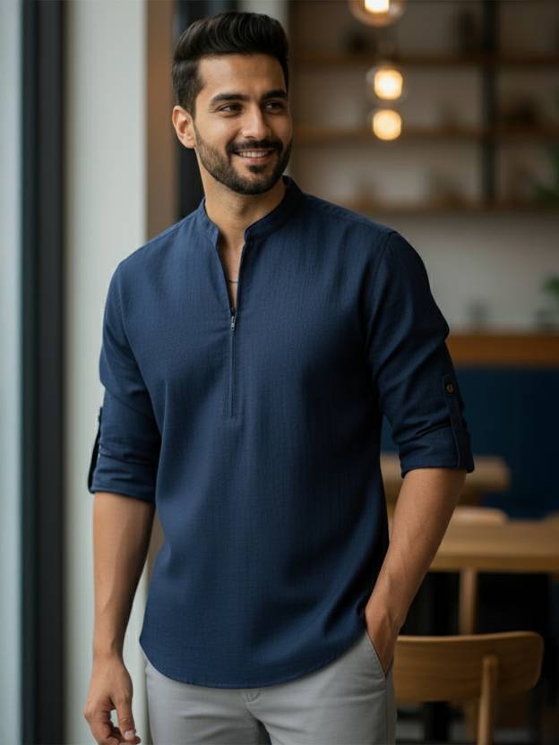 This Cotton Blend Short Kurta is perfect for men who value style and comfort. Its versatile design makes it ideal for any occasion—festivals, parties, or casual outings. Product Details 📋 👨🦰 Gender: Men 🎨 Pattern: Solid 🧵 Design Type: Plain 🔘 Closure: Zipper 👕 Sleeve: Full Sleeve ⬆️ Waist Rise: Mid-Rise 🪡 Hemline: Curved 🌿 Fabric: Cotton Blend 📏 Product Length: Short 📦 Material & Care 🧺 Fabric: Cotton Blend Wash: Suitable for hand wash and machine wash. How to Style 🎯 Pair it with dark-wash denim or linen trousers for a casual look. Dress it up with a pair of churidar or slim-fit pants for festive occasions. Add leather sandals or loafers and a wristwatch for a classy finish. Regular the sleeves for a relaxed vibe during daytime events. This shirt kurta seamlessly blends traditional elegance with modern styling, making it a wardrobe essential for every man! 👌