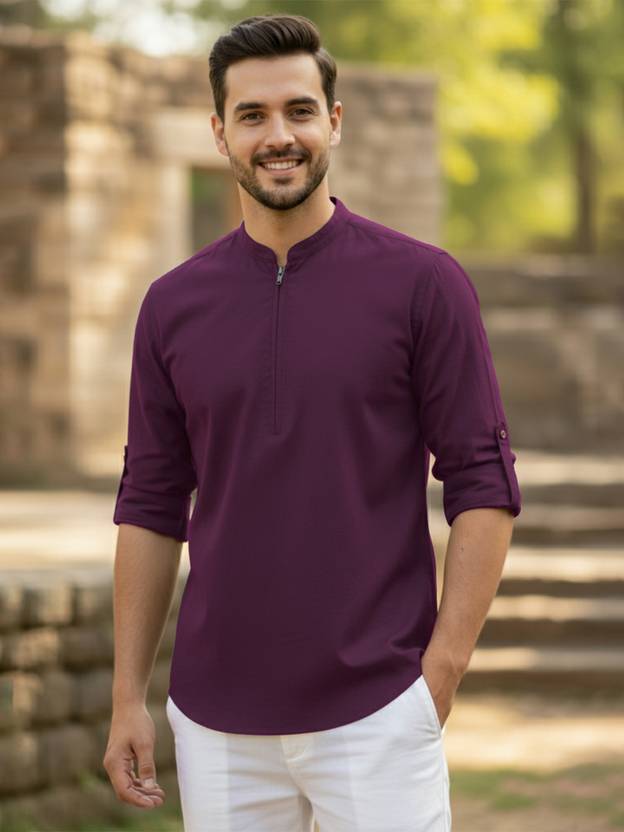 This Cotton Blend Short Kurta is perfect for men who value style and comfort. Its versatile design makes it ideal for any occasion—festivals, parties, or casual outings. Product Details 📋 👨🦰 Gender: Men 🎨 Pattern: Solid 🧵 Design Type: Plain 🔘 Closure: Zipper 👕 Sleeve: Full Sleeve ⬆️ Waist Rise: Mid-Rise 🪡 Hemline: Curved 🌿 Fabric: Cotton Blend 📏 Product Length: Short 📦 Material & Care 🧺 Fabric: Cotton Blend Wash: Suitable for hand wash and machine wash. How to Style 🎯 Pair it with dark-wash denim or linen trousers for a casual look. Dress it up with a pair of churidar or slim-fit pants for festive occasions. Add leather sandals or loafers and a wristwatch for a classy finish. Regular the sleeves for a relaxed vibe during daytime events. This shirt kurta seamlessly blends traditional elegance with modern styling, making it a wardrobe essential for every man! 👌