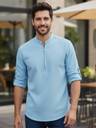 This Cotton Blend Short Kurta is perfect for men who value style and comfort. Its versatile design makes it ideal for any occasion—festivals, parties, or casual outings. Product Details 📋 👨🦰 Gender: Men 🎨 Pattern: Solid 🧵 Design Type: Plain 🔘 Closure: Zipper 👕 Sleeve: Full Sleeve ⬆️ Waist Rise: Mid-Rise 🪡 Hemline: Curved 🌿 Fabric: Cotton Blend 📏 Product Length: Short 📦 Material & Care 🧺 Fabric: Cotton Blend Wash: Suitable for hand wash and machine wash. How to Style 🎯 Pair it with dark-wash denim or linen trousers for a casual look. Dress it up with a pair of churidar or slim-fit pants for festive occasions. Add leather sandals or loafers and a wristwatch for a classy finish. Regular the sleeves for a relaxed vibe during daytime events. This shirt kurta seamlessly blends traditional elegance with modern styling, making it a wardrobe essential for every man! 👌