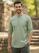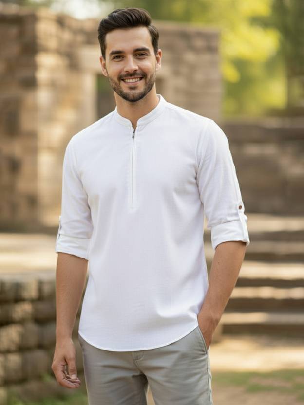 This Cotton Blend Short Kurta is perfect for men who value style and comfort. Its versatile design makes it ideal for any occasion—festivals, parties, or casual outings. Product Details 📋 👨🦰 Gender: Men 🎨 Pattern: Solid 🧵 Design Type: Plain 🔘 Closure: Zipper 👕 Sleeve: Full Sleeve ⬆️ Waist Rise: Mid-Rise 🪡 Hemline: Curved 🌿 Fabric: Cotton Blend 📏 Product Length: Short 📦 Material & Care 🧺 Fabric: Cotton Blend Wash: Suitable for hand wash and machine wash. How to Style 🎯 Pair it with dark-wash denim or linen trousers for a casual look. Dress it up with a pair of churidar or slim-fit pants for festive occasions. Add leather sandals or loafers and a wristwatch for a classy finish. Regular the sleeves for a relaxed vibe during daytime events. This shirt kurta seamlessly blends traditional elegance with modern styling, making it a wardrobe essential for every man! 👌