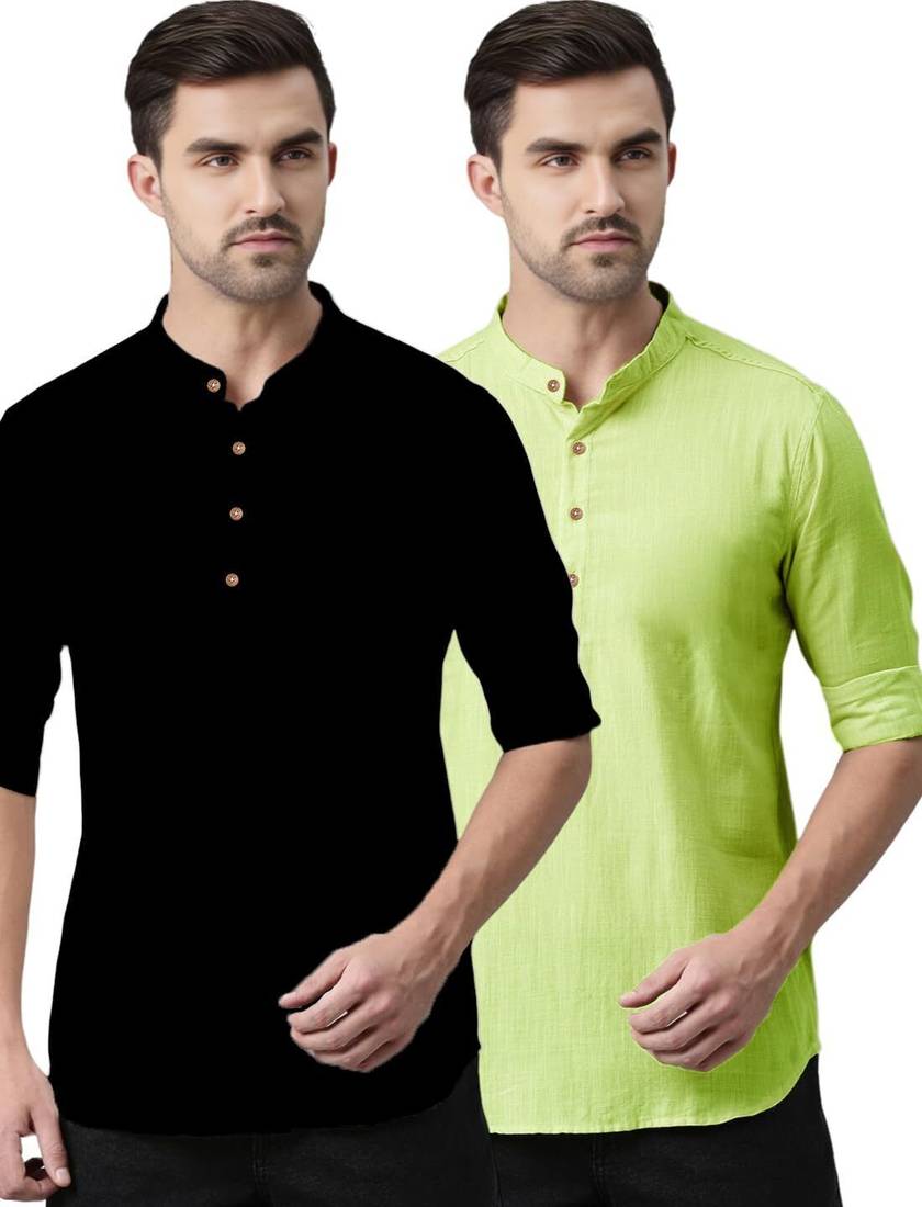 GUYS HUBB Men Solid Straight Kurta (Beige)