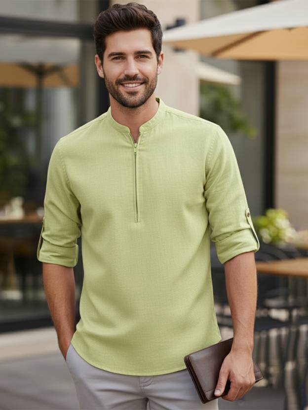This Cotton Blend Short Kurta is perfect for men who value style and comfort. Its versatile design makes it ideal for any occasion—festivals, parties, or casual outings. Product Details 📋 👨‍🦰 Gender: Men 🎨 Pattern: Solid 🧵 Design Type: Plain 🔘 Closure: Zipper 👕 Sleeve: Full Sleeve ⬆️ Waist Rise: Mid-Rise 🪡 Hemline: Curved 🌿 Fabric: Cotton Blend 📏 Product Length: Short 📦 Material & Care 🧺 Fabric: Cotton Blend Wash: Suitable for hand wash and machine wash. How to Style 🎯 Pair it with dark-wash denim or linen trousers for a casual look. Dress it up with a pair of churidar or slim-fit pants for festive occasions. Add leather sandals or loafers and a wristwatch for a classy finish. Regular the sleeves for a relaxed vibe during daytime events. This shirt kurta seamlessly blends traditional elegance with modern styling, making it a wardrobe essential for every man! 👌