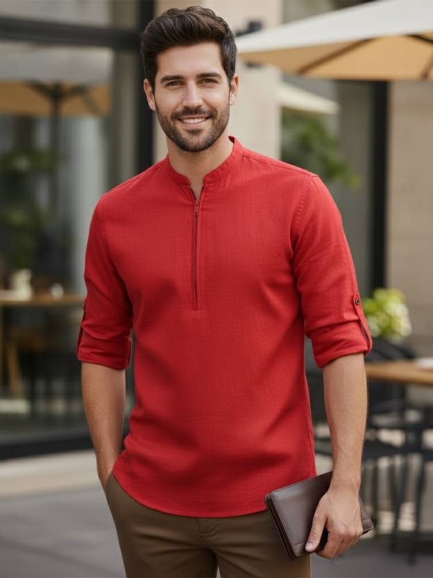 This Cotton Blend Short Kurta is perfect for men who value style and comfort. Its versatile design makes it ideal for any occasion—festivals, parties, or casual outings. Product Details 📋 👨‍🦰 Gender: Men 🎨 Pattern: Solid 🧵 Design Type: Plain 🔘 Closure: Zipper 👕 Sleeve: Full Sleeve ⬆️ Waist Rise: Mid-Rise 🪡 Hemline: Curved 🌿 Fabric: Cotton Blend 📏 Product Length: Short 📦 Material & Care 🧺 Fabric: Cotton Blend Wash: Suitable for hand wash and machine wash. How to Style 🎯 Pair it with dark-wash denim or linen trousers for a casual look. Dress it up with a pair of churidar or slim-fit pants for festive occasions. Add leather sandals or loafers and a wristwatch for a classy finish. Regular the sleeves for a relaxed vibe during daytime events. This shirt kurta seamlessly blends traditional elegance with modern styling, making it a wardrobe essential for every man! 👌
