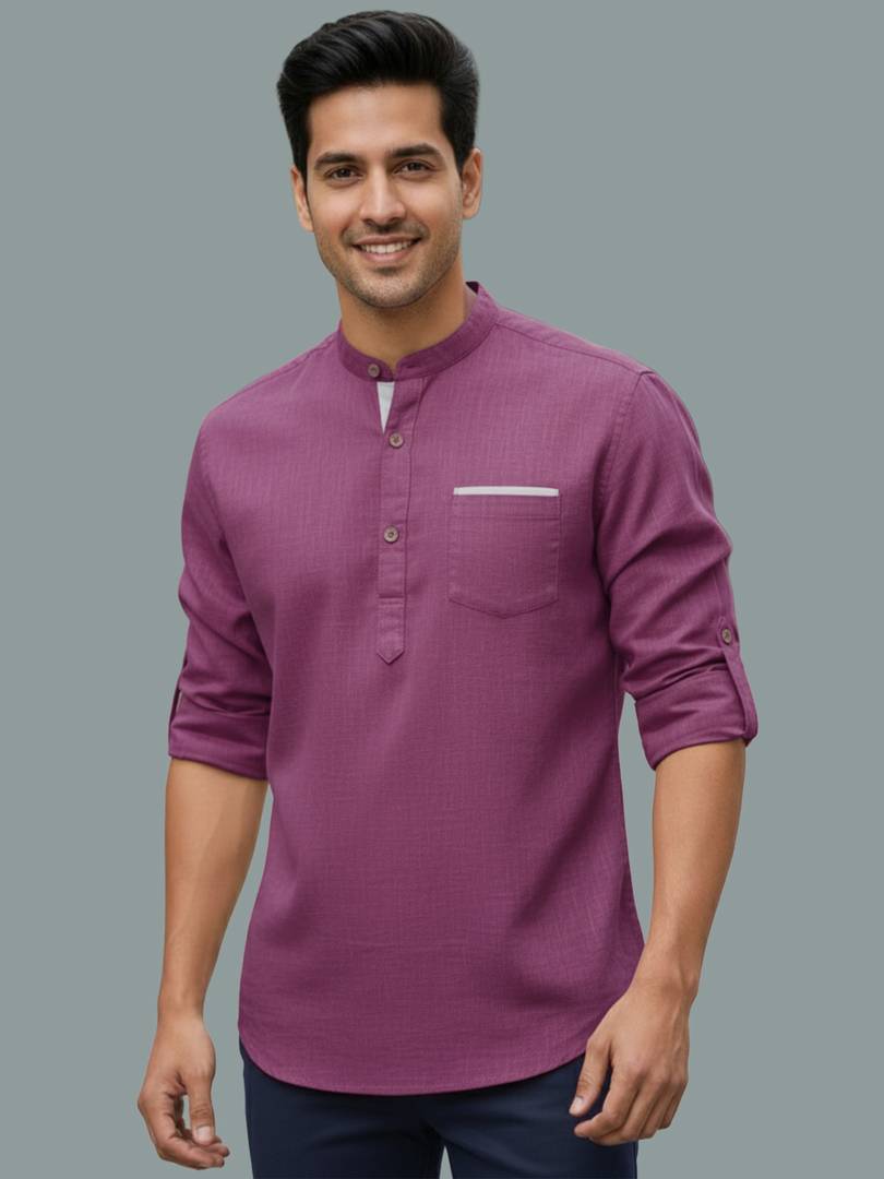 UNIFAV Men Solid Straight Kurta (Purple)