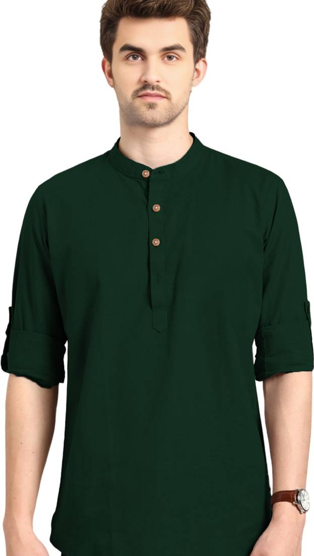 This pure cotton beige short kurta is perfect for men who value style and comfort. Its versatile design makes it ideal for any occasion—festivals, parties, or casual outings. Product Details 📋 👨‍🦰 Gender: Men 🎨 Pattern: Solid 🧵 Design Type: Plain 🔘 Closure: Button 👕 Sleeve: Full Sleeve (Roll-Up Option) ⬆️ Waist Rise: Mid-Rise 🪡 Collar: Mandarin/Chinese ✂️ Hemline: Curved 🌿 Fabric: Pure Cotton 📏 Product Length: Short 📦 Pack of: 1 Material & Care 🧺 Fabric: 100% Cotton Wash: Suitable for hand wash and machine wash. How to Style 🎯 Pair it with dark-wash denim or linen trousers for a casual look. Dress it up with a pair of churidar or slim-fit pants for festive occasions. Add leather sandals or loafers and a wristwatch for a classy finish. Roll up the sleeves for a relaxed vibe during daytime events. This short kurta seamlessly blends traditional elegance with modern styling, making it a wardrobe essential for every man! 👌"