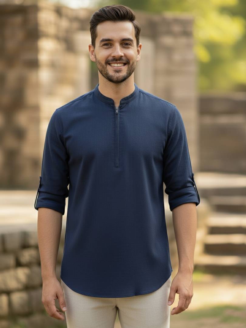 This Cotton Blend Short Kurta is perfect for men who value style and comfort. Its versatile design makes it ideal for any occasion—festivals, parties, or casual outings. Product Details 📋 👨‍🦰 Gender: Men 🎨 Pattern: Solid 🧵 Design Type: Plain 🔘 Closure: Zipper 👕 Sleeve: Full Sleeve ⬆️ Waist Rise: Mid-Rise 🪡 Hemline: Curved 🌿 Fabric: Cotton Blend 📏 Product Length: Short 📦 Material & Care 🧺 Fabric: Cotton Blend Wash: Suitable for hand wash and machine wash. How to Style 🎯 Pair it with dark-wash denim or linen trousers for a casual look. Dress it up with a pair of churidar or slim-fit pants for festive occasions. Add leather sandals or loafers and a wristwatch for a classy finish. Regular the sleeves for a relaxed vibe during daytime events. This shirt kurta seamlessly blends traditional elegance with modern styling, making it a wardrobe essential for every man! 👌