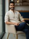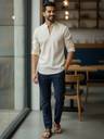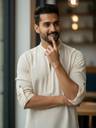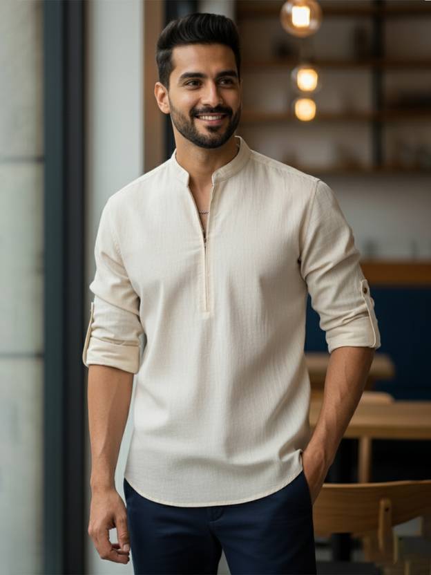 Men Solid Cotton Blend Straight Kurta (Beige)
