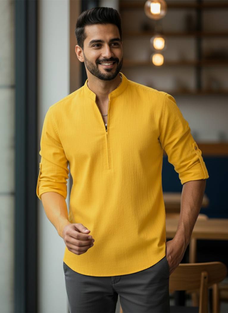 Upgrade your ethnic wardrobe with this men’s short kurta, crafted from premium breathable fabric for all-day comfort. Designed in a regular fit, this kurta features a classic mandarin collar, full/half sleeves, and a stylish straight hem, making it perfect for casual wear, festive occasions, office wear, and daily use. Pair it with jeans, chinos, or pyjamas for a versatile and modern ethnic look.