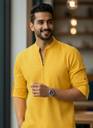 Vida Loca Men Solid Cotton Blend A-line Kurta (Yellow)