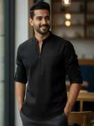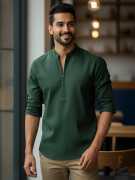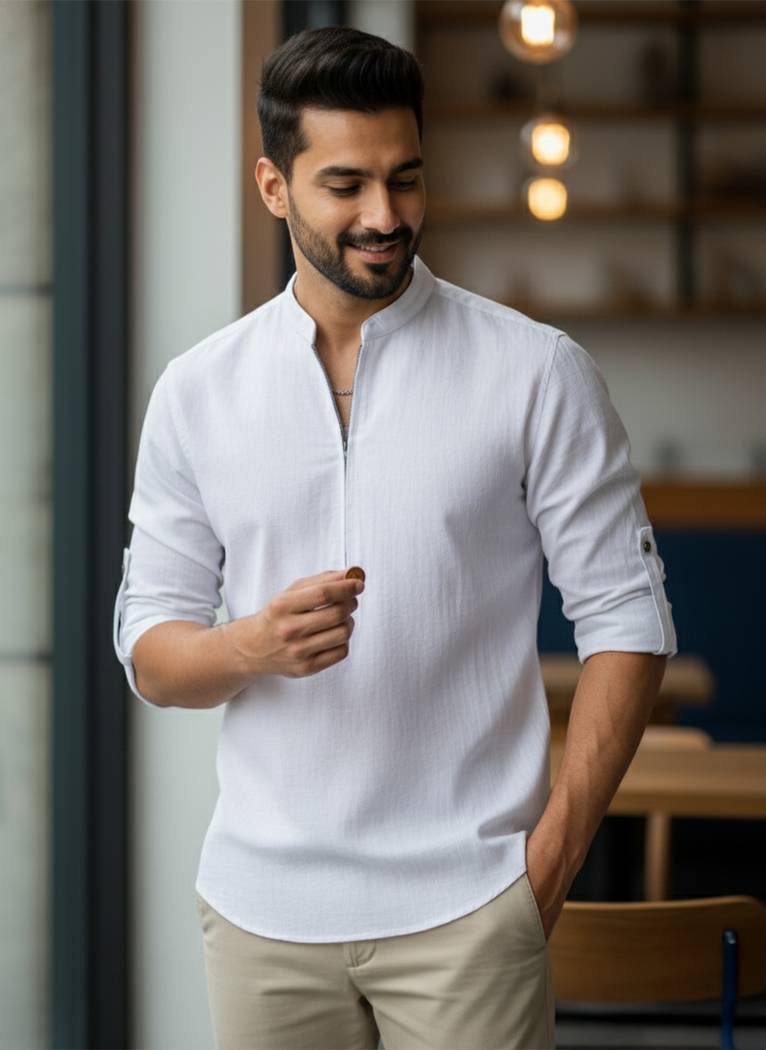 This Cotton Blend Short Kurta is perfect for men who value style and comfort. Its versatile design makes it ideal for any occasion—festivals, parties, or casual outings. Product Details 📋 👨🦰 Gender: Men 🎨 Pattern: Solid 🧵 Design Type: Plain 🔘 Closure: Zipper 👕 Sleeve: Full Sleeve ⬆️ Waist Rise: Mid-Rise 🪡 Hemline: Curved 🌿 Fabric: Cotton Blend 📏 Product Length: Short 📦 Material & Care 🧺 Fabric: Cotton Blend Wash: Suitable for hand wash and machine wash. How to Style 🎯 Pair it with dark-wash denim or linen trousers for a casual look. Dress it up with a pair of churidar or slim-fit pants for festive occasions. Add leather sandals or loafers and a wristwatch for a classy finish. Regular the sleeves for a relaxed vibe during daytime events. This shirt kurta seamlessly blends traditional elegance with modern styling, making it a wardrobe essential for every man! 👌