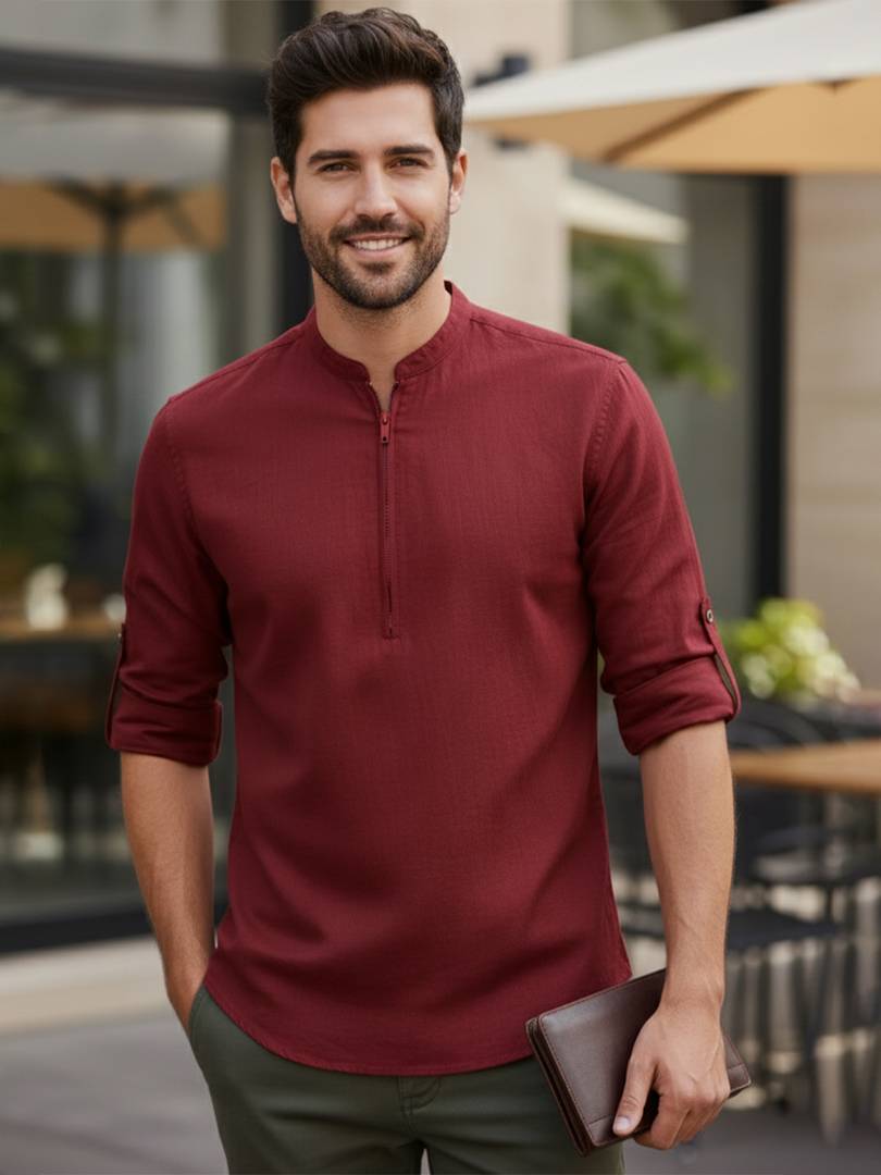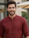 This Cotton Blend Short Kurta is perfect for men who value style and comfort. Its versatile design makes it ideal for any occasion—festivals, parties, or casual outings. Product Details 📋 👨🦰 Gender: Men 🎨 Pattern: Solid 🧵 Design Type: Plain 🔘 Closure: Zipper 👕 Sleeve: Full Sleeve ⬆️ Waist Rise: Mid-Rise 🪡 Hemline: Curved 🌿 Fabric: Cotton Blend 📏 Product Length: Short 📦 Material & Care 🧺 Fabric: Cotton Blend Wash: Suitable for hand wash and machine wash. How to Style 🎯 Pair it with dark-wash denim or linen trousers for a casual look. Dress it up with a pair of churidar or slim-fit pants for festive occasions. Add leather sandals or loafers and a wristwatch for a classy finish. Regular the sleeves for a relaxed vibe during daytime events. This shirt kurta seamlessly blends traditional elegance with modern styling, making it a wardrobe essential for every man! 👌