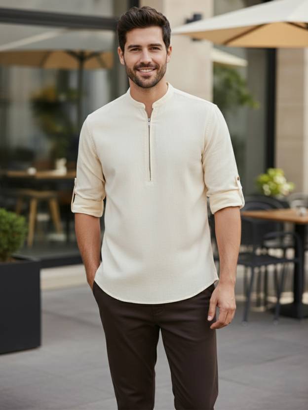 This Cotton Blend Short Kurta is perfect for men who value style and comfort. Its versatile design makes it ideal for any occasion—festivals, parties, or casual outings. Product Details 📋 👨🦰 Gender: Men 🎨 Pattern: Solid 🧵 Design Type: Plain 🔘 Closure: Zipper 👕 Sleeve: Full Sleeve ⬆️ Waist Rise: Mid-Rise 🪡 Hemline: Curved 🌿 Fabric: Cotton Blend 📏 Product Length: Short 📦 Material & Care 🧺 Fabric: Cotton Blend Wash: Suitable for hand wash and machine wash. How to Style 🎯 Pair it with dark-wash denim or linen trousers for a casual look. Dress it up with a pair of churidar or slim-fit pants for festive occasions. Add leather sandals or loafers and a wristwatch for a classy finish. Regular the sleeves for a relaxed vibe during daytime events. This shirt kurta seamlessly blends traditional elegance with modern styling, making it a wardrobe essential for every man! 👌