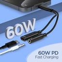 UNIGEN Black 2-in-1 USB-C to 3.5mm Headphone & Charger Adapter with 60W PD Fast Charging Phone Converter (Android)