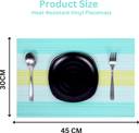 • Stylish Dining Table Placemats: UniKart presents a set of stylish and elegant PVC vinyl placemats, perfect for enhancing the aesthetic appeal of your dining table while protecting it from spills, stains, and heat damage., High-Quality Material: Crafted from high-quality PVC vinyl, these placemats are durable, flexible, and resistant to heat, ensuring they withstand everyday use in your kitchen or dining room., Heat Resistant: Designed to withstand temperatures of up to 176°F (80°C), these placemats provide reliable protection against hot plates, dishes, and serving bowls, keeping your table surface safe from heat damage., Washable and Stain Resistant: Easy to clean & stain resistant, these placemats are washable with mild soap and water, allowing for hassle-free maintenance., Versatile Use: Whether for daily meals, family gatherings, parties, or special occasions, these placemats add a touch of elegance to any table setting, making them ideal for both casual and formal dining experiences.