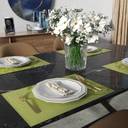 These Placemats from UniKart are Non-Slip Insulation Heat-Resistant & Waterproof Stain Resistant Washable Placemat for Dining & Kitchen Table. Made of Vinyl & Polyester, safe to contact with food directly. 10% thicker than a normal placemat and won't crisp, or deform. Ultra-durable, UV resistant, and fadeless for both indoor and outdoor long-term everyday use. These heat-resistant placemats are washable, just wipe off the stains stuck on them, if needed, brush or hand wash in soapy water, and then wipe dry or hang dry, it will dry quickly without fading or shrinking. (Please DO NOT wash in a washing machine). This table mat is precisely woven and hot-pressed with no rough selvage, meanwhile, it can be cut or bent freely without raveling. HEAT-RESISTCANT and SKID-RESISTCANT, provide an effective heat barrier to protect your table. This Washable Vinyl Placemat is definitely a perfect shield and decor for your table in the dining hall, kitchen, restaurant, coffee shop, hotel, or even business office. Not only used as a heat-resistant placemat, but also a skid-proof mat or a dust-proof mat for a worktop or a drawer.