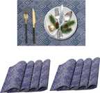 • Stylish Dining Table Placemats: UniKart presents a set of stylish and elegant PVC vinyl placemats, perfect for enhancing the aesthetic appeal of your dining table while protecting it from spills, stains, and heat damage., High-Quality Material: Crafted from high-quality PVC vinyl, these placemats are durable, flexible, and resistant to heat, ensuring they withstand everyday use in your kitchen or dining room., Heat Resistant: Designed to withstand temperatures of up to 176°F (80°C), these placemats provide reliable protection against hot plates, dishes, and serving bowls, keeping your table surface safe from heat damage., Washable and Stain Resistant: Easy to clean & stain resistant, these placemats are washable with mild soap and water, allowing for hassle-free maintenance., Versatile Use: Whether for daily meals, family gatherings, parties, or special occasions, these placemats add a touch of elegance to any table setting, making them ideal for both casual and formal dining experiences.