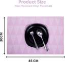 • Stylish Dining Table Placemats: UniKart presents a set of stylish and elegant PVC vinyl placemats, perfect for enhancing the aesthetic appeal of your dining table while protecting it from spills, stains, and heat damage., High-Quality Material: Crafted from high-quality PVC vinyl, these placemats are durable, flexible, and resistant to heat, ensuring they withstand everyday use in your kitchen or dining room., Heat Resistant: Designed to withstand temperatures of up to 176°F (80°C), these placemats provide reliable protection against hot plates, dishes, and serving bowls, keeping your table surface safe from heat damage., Washable and Stain Resistant: Easy to clean & stain resistant, these placemats are washable with mild soap and water, allowing for hassle-free maintenance., Versatile Use: Whether for daily meals, family gatherings, parties, or special occasions, these placemats add a touch of elegance to any table setting, making them ideal for both casual and formal dining experiences.