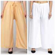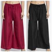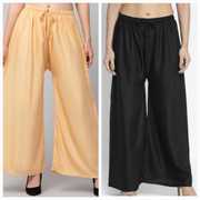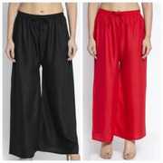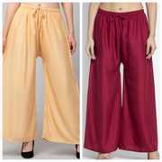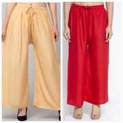 Pack of 2 Women Relaxed Beige, Red Viscose Rayon Trousers