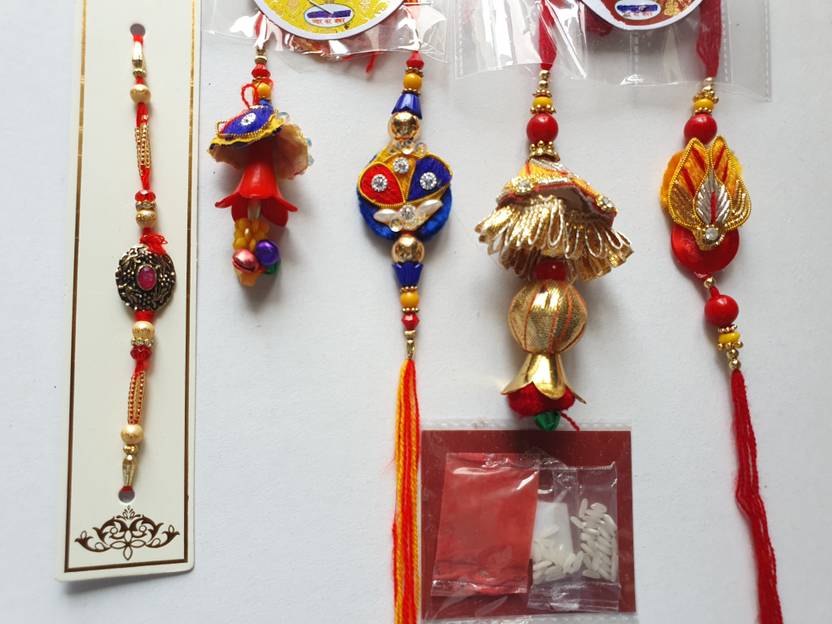 Unikstop Designer 202682 Mauli Thread Chawal Roli Pack, Rakhi Set (5 Rakhi, Roli Chawal)
