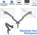 Enjoy 180° swivel, 360° rotation, and +90°/-85° tilt to easily switch between landscape and portrait orientations. Made from durable steel and aluminum, this dual arm combines strength with flexibility, ideal for both office and home workstations.