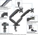 The integrated cable management system keeps your setup neat, while the dual mounting options (clamp and grommet) ensure easy installation on any desk type. A perfect balance between affordability, quality, and functionality.Boost your productivity with this Economical Gas Spring Dual Monitor Arm, designed to support two 13–32 inch screens side by side. Equipped with gas spring assistance, it allows smooth and effortless adjustment — raise, tilt, swivel, or rotate both monitors for the perfect ergonomic viewing angle.
