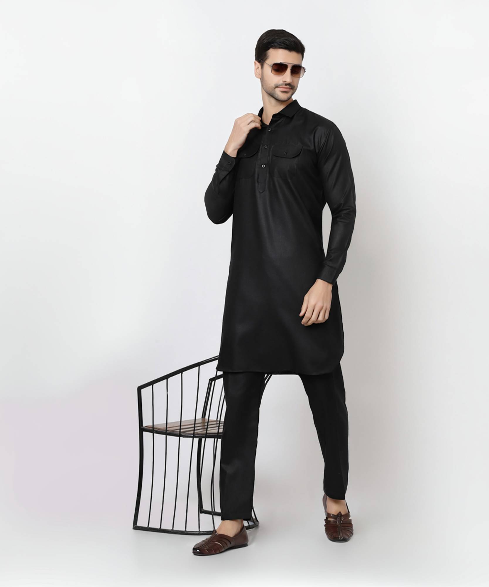 Look your ethnic best wearing this checkerd coloured Pathani set for men from the fashion house of TSARINA. Made from Cotton, this regular-fit kurta pyjama set comprises a full-sleeved kurta and pyjama to complete your look. Team this outfit with embroidered mojris and rock the party that you attend . The best thing about this set is that you can pair any jacket, dupatta or accessory with this set. The best thing about this set is that you can pair any jacket, dupatta or accessory with this set.
