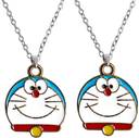 (Pack Of 2 pcs) Unisex Multicolor Fancy & Stylish Cartoon Anime Little Cute Lovely Stainless Steel Doraemon Head Face Charm Pendant Locket Necklace With Clavicle Chain