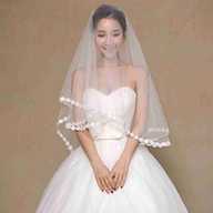 Unique bridal Short veil Wedding veil with front layer Head Band (White)