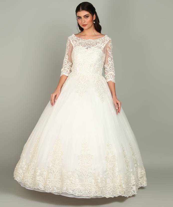 Self Design Lace, Net Stitched Anarkali Gown (White)