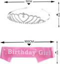 Unique Creations Birthday Girl Pink Sash with Beautiful Rhinstone Tiara Crown Set with Safety Pin