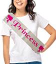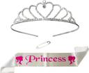 Unique Creations Princess White Sash -Heart Diamond Crown for Birthday for Girls & Womens Kids (Set of 2)