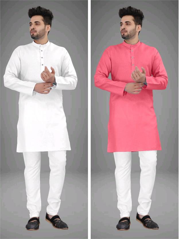 UNIQUE MOMENTS Pack of 2 Men Solid Cotton Blend Straight Kurta (Multicolor)